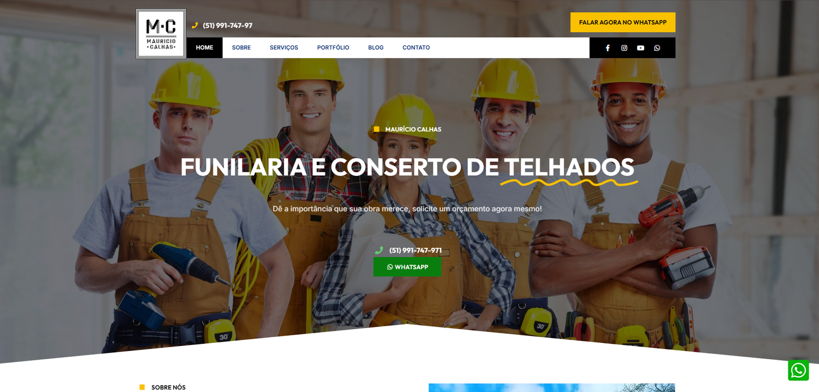 Site Mauricio Calhas, funilaria e concertos de calhas e telhados.